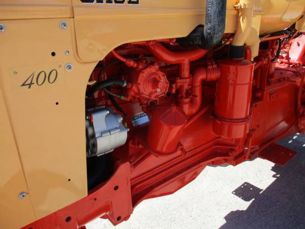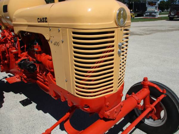 Beautiful restored J.I.Case model 400 (411) tractor (1955 production, missing serial # tag). Unit has been fully mechanically and cosmetically restored (has about 45 hours since restoration). LP gas engine starts easy and runs strong. Easy to use 8 speed transmission that shifts easy. Standard 540 rear pto (live). Case Eagle Hitch in rear (missing top link). New Firestone Field & Road rear tires on new rims. Unit has been converted to 12-volt charging with alternator and all new wiring. Absolutely everything works as it should (including gauges, lights). A great tractor to use or add to your collection. Priced to sell at $8,190. Please message or call 262-939-8800 anytime.